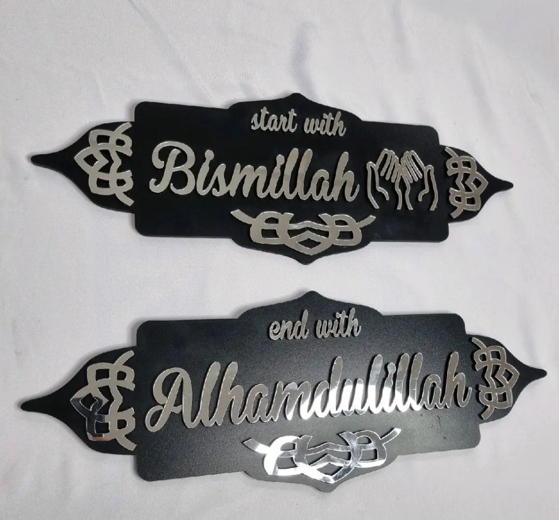 🌿 Bigger Size “Start with Bismillah & Alhamdulillah” 2-Piece Islamic Wall Frame Set | Elegant...