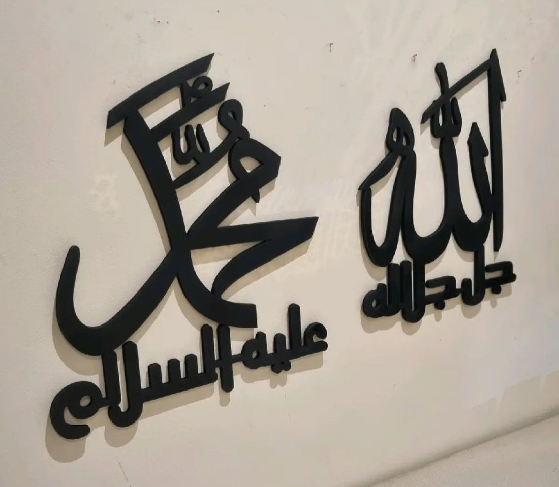 Beautiful Islamic wall art with Arabic calligraphy and geometric designs, perfect for any space or as a thoughtful gift.