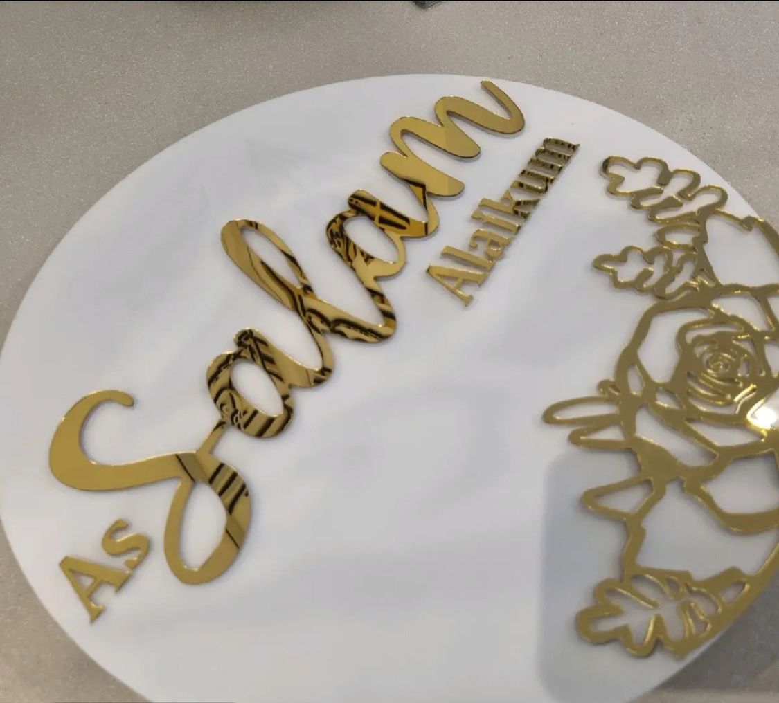 Elegant Arabic Calligraphy Design – “Assalamualaikum” presented in modern mirror acrylic or matte lettering, offering timeless charm.